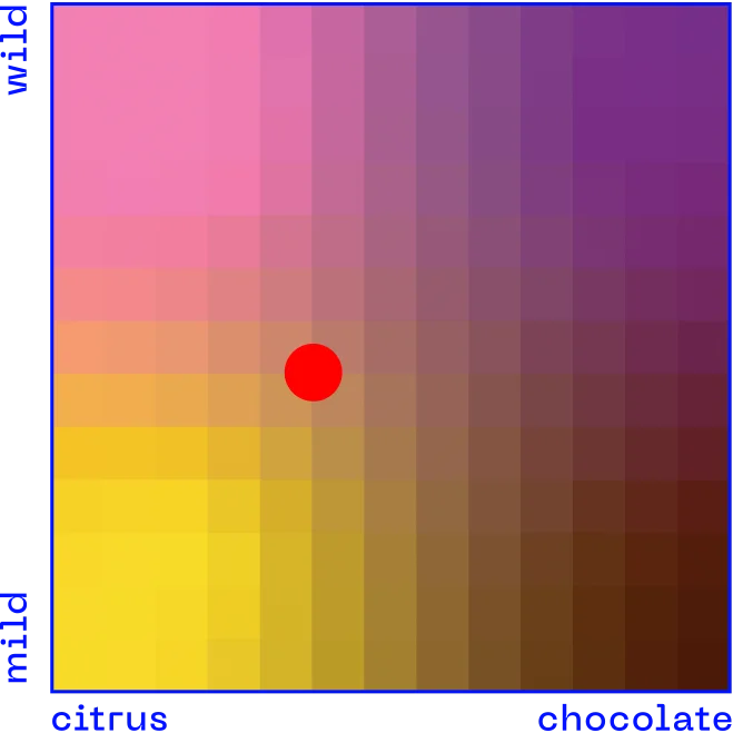 Rádi by vám přiblížili, jak bude káva ovocná. Od citrusů je k čokoládě ještě dlouhá cesta, proto si mezi nimi představte ještě: